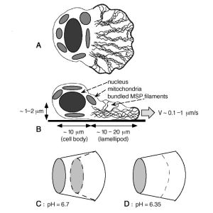 Cell migration is an important behavior in wound healing, morphogenesis and cancerogenesis. It is based on a complex mechanochemical protein machine, regulated and self-organized by a complex network of biochemical reactions. The best way to elucidate principles of cell migration these complex cells is to choose a specific system and attempt a complete understanding of its working. Our work will focus on the migrating amoeboid sperm of the nematode Ascaris suum. These cells move using a simpler mechanical engine based upon a network of major sperm protein. More to the point, their motion is similar to similarly shaped actin-based cells.